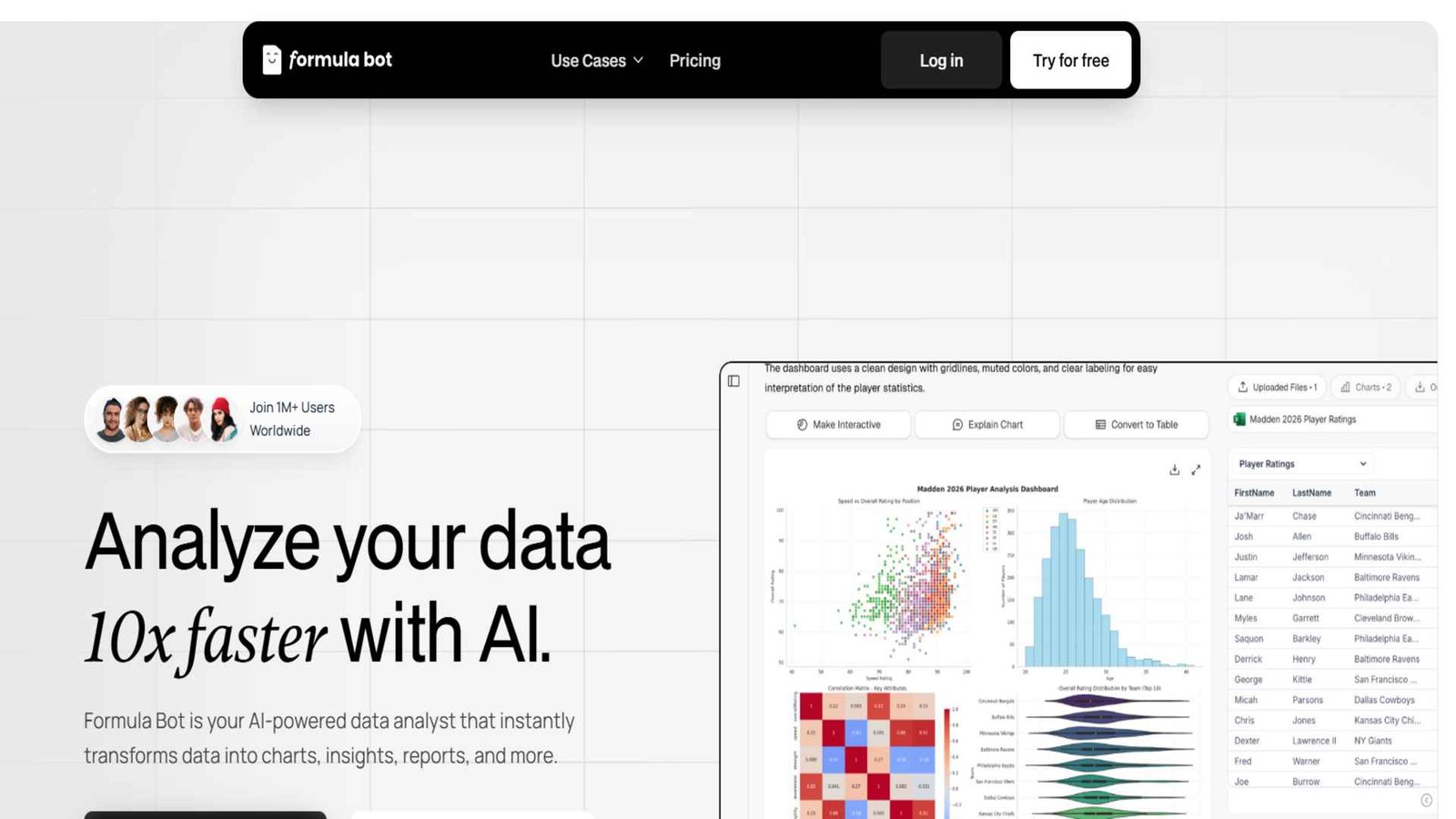Excel is the backbone of the business world, but memorizing formulas like =INDEX(MATCH()) is a nightmare. Formula Bot speaks your language.