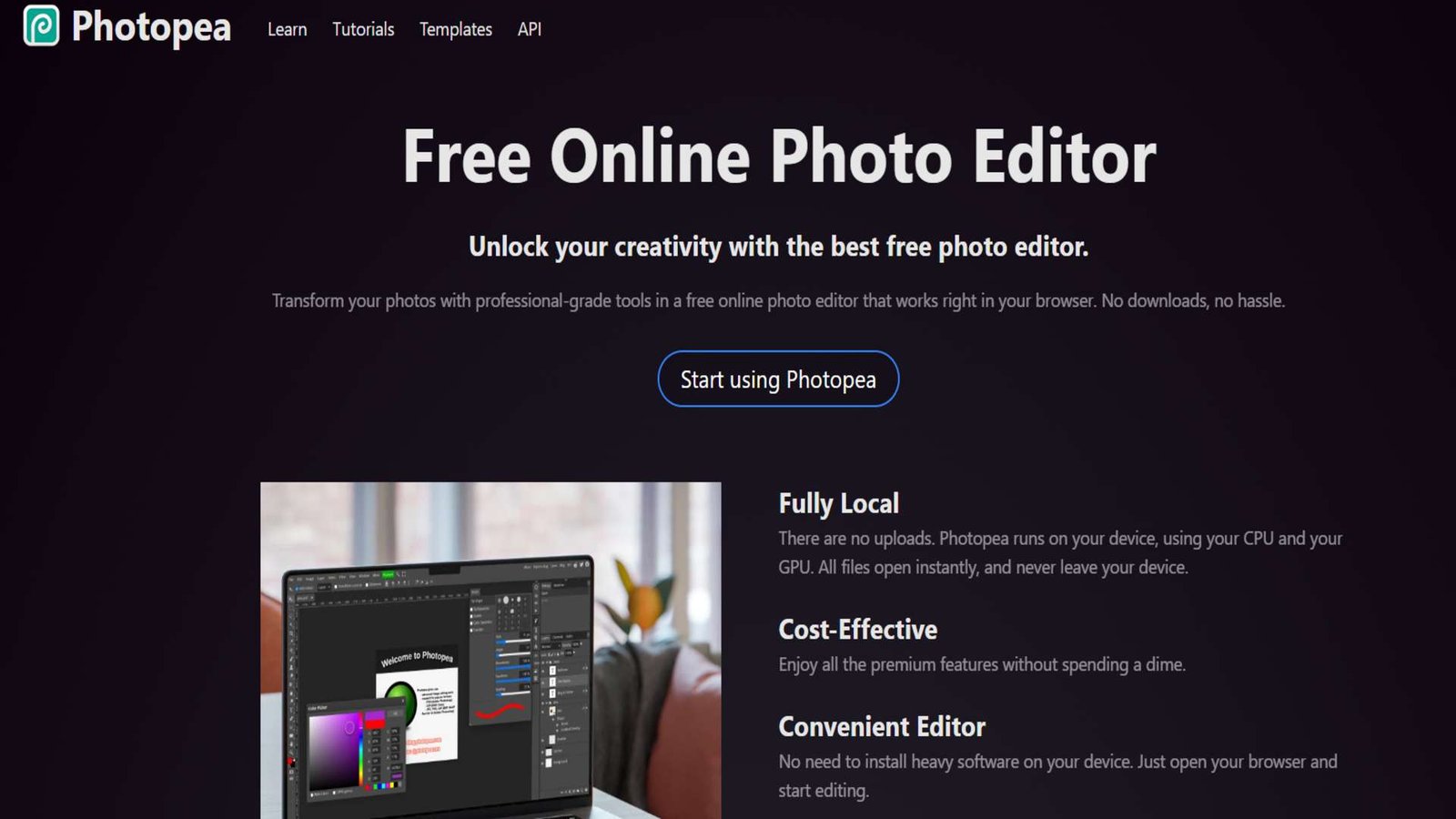 - The Secret Sauce: It uses WebAssembly. This allows your browser to run heavy code locally on your computer. When you load Photopea, you can actually turn off your Wi-Fi, and it will keep working perfectly. Your photos never leave your device (huge for privacy).